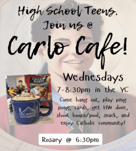 Life Teen is our high school youth ministry. We meet every Sunday evening in the Youth Center from 7-8:30pm to learn, grow, pray, and have fun together. Keep your eyes open for our fall and winter retreats, as well as summer trips.