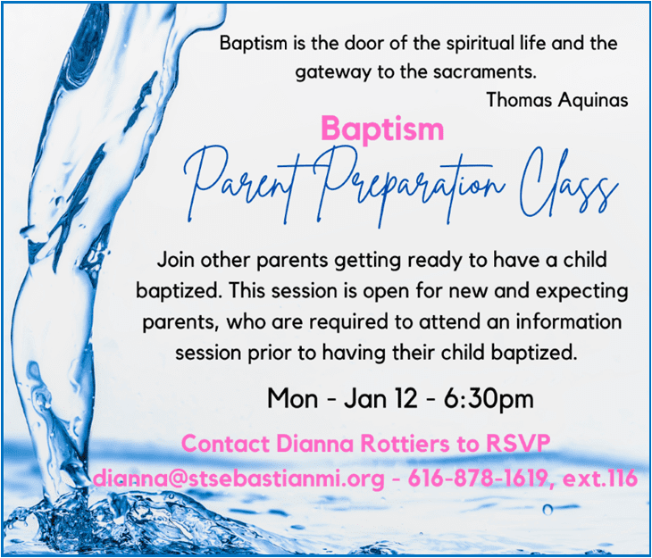 Click here for more information regarding Baptisms at St. Sebastian Church
